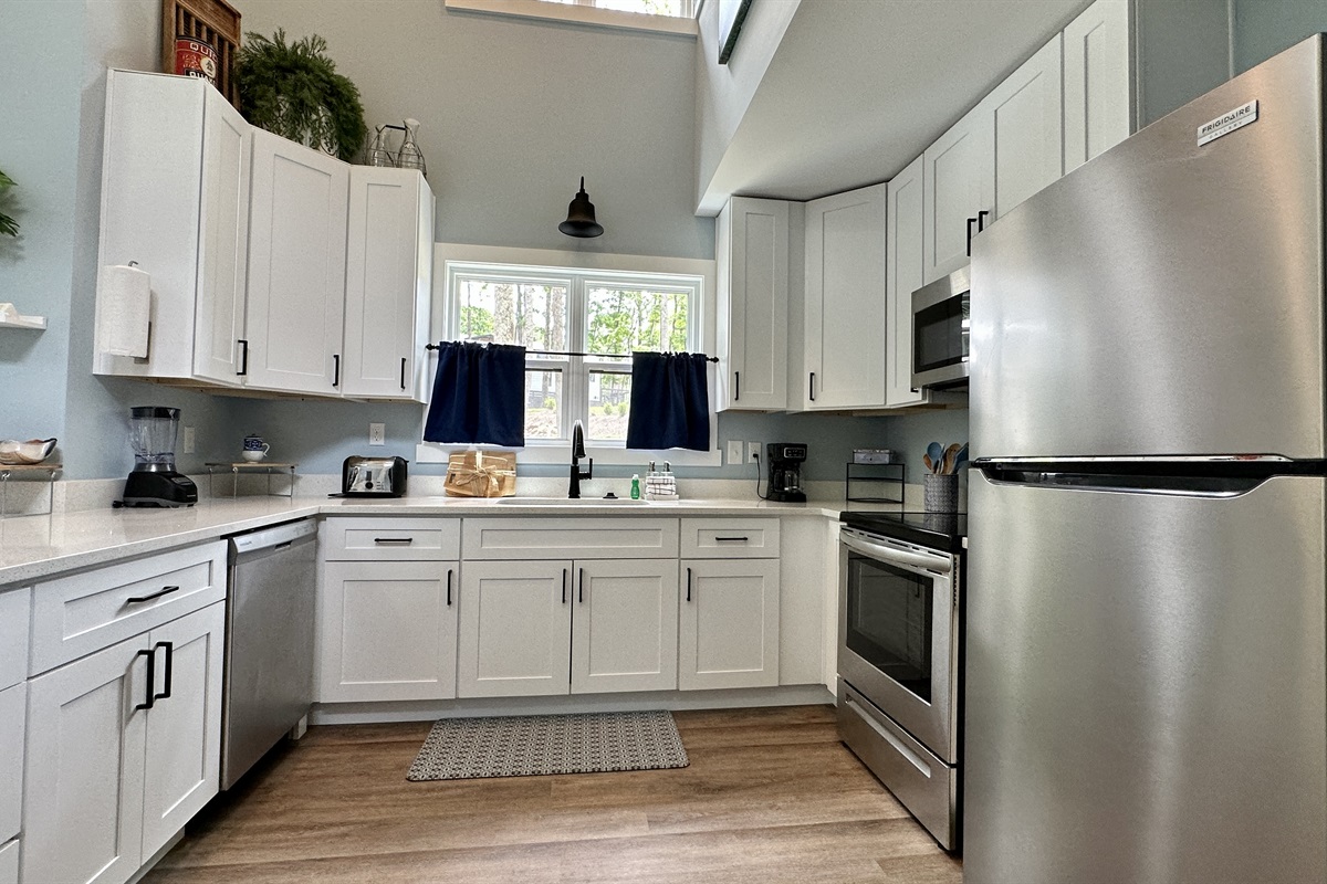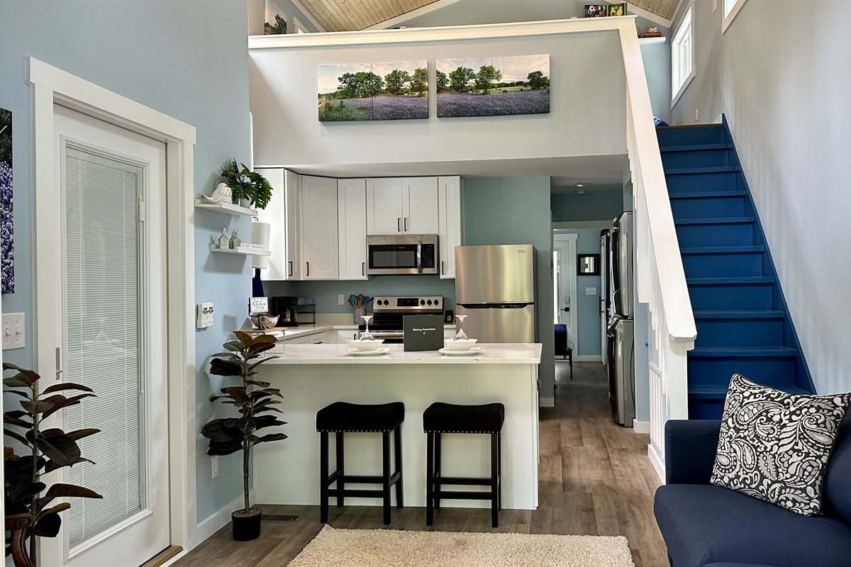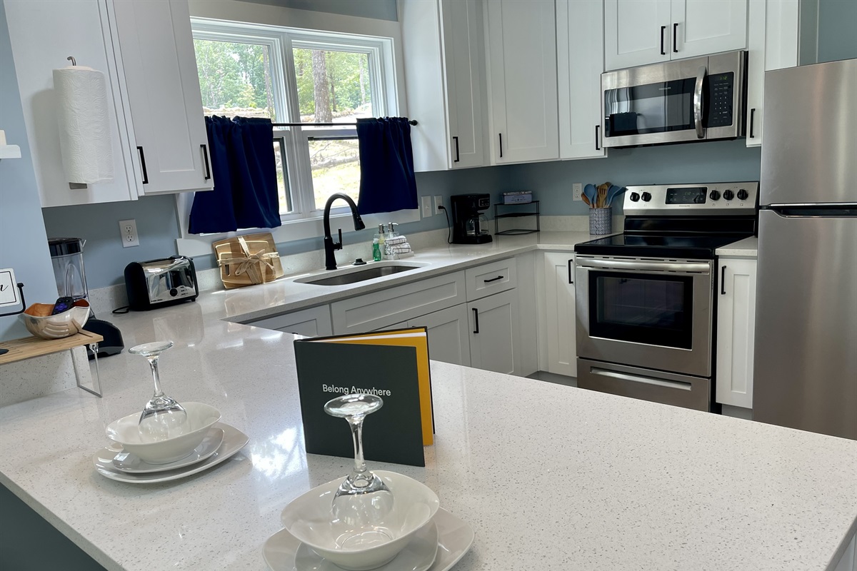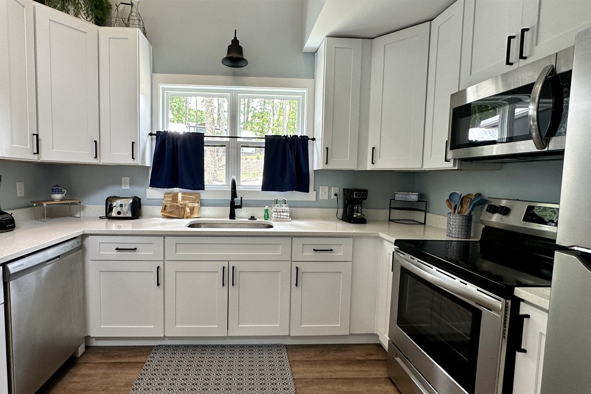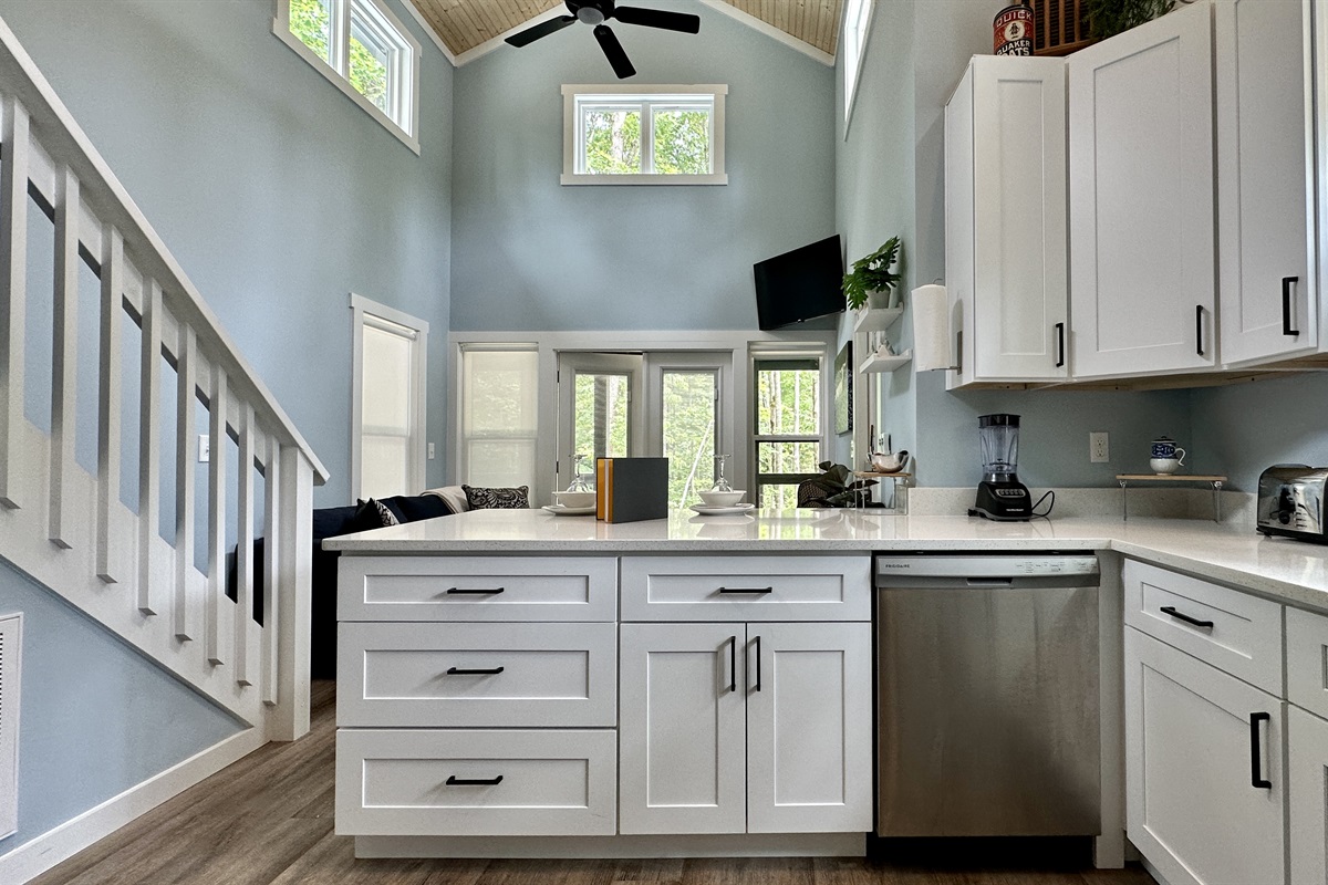 Bright and fully stocked with modern appliances, including a dual coffee maker and dishwasher, plus all the essentials to make breakfast, lunch, or dinner a breeze. The open layout is perfect for family cooking and casual dining.