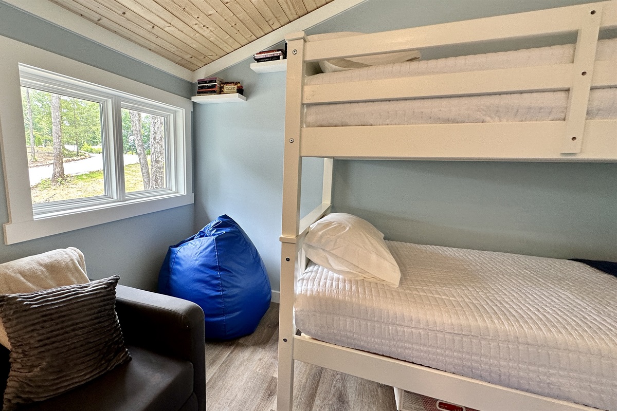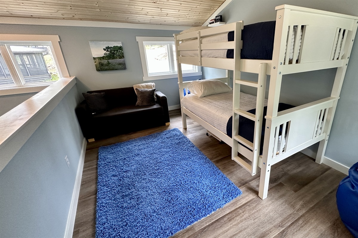 • Loft Bedroom: Two bunk beds, ideal for kids or extra guests seeking a fun hideaway