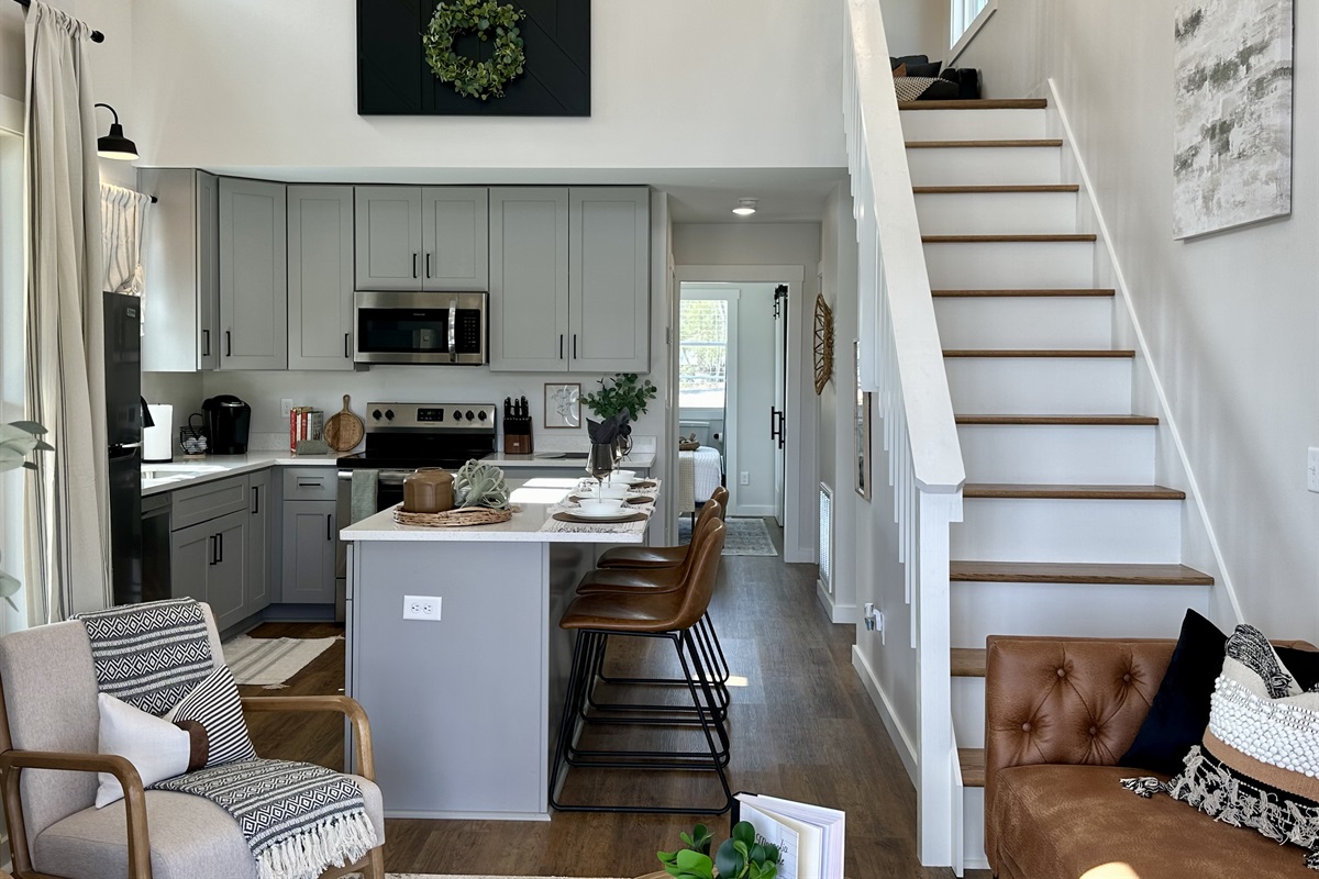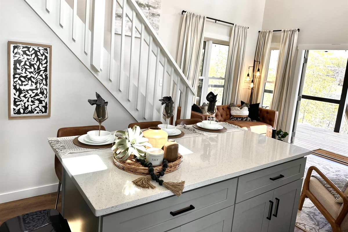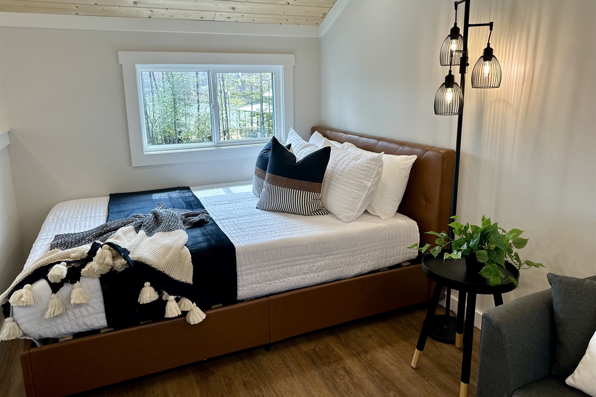 Calm Waters delivers exactly what its name promises—a serene, lakeside sanctuary designed to soothe the soul. Located in a quiet corner of Water’s Edge, this newly built tiny home offers direct access to the lake and a private fishing dock, plus two complimentary kayaks for your adventures.