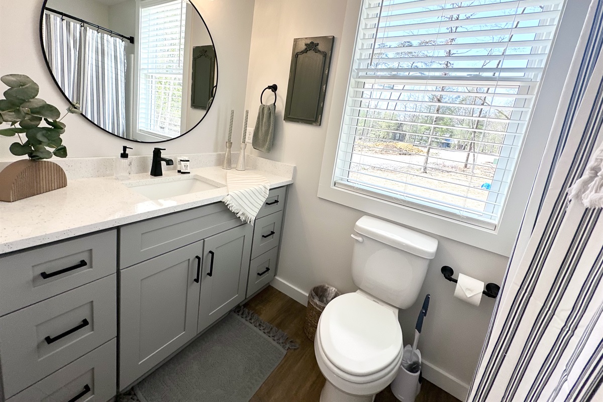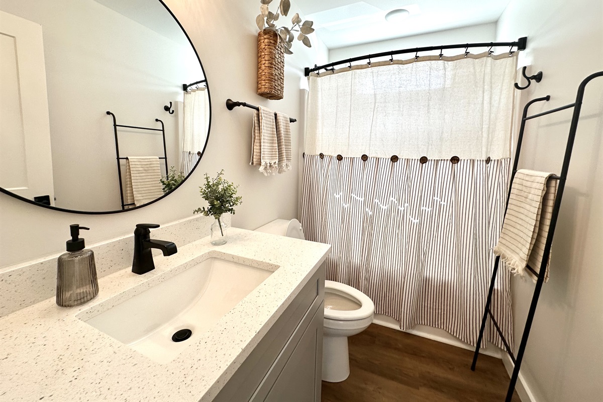Two modern, sparkling bathrooms stocked with fresh towels and toiletries create a relaxing space to refresh after a day of adventures.