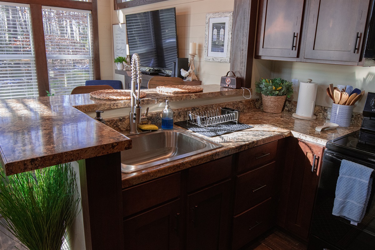 We just loved our stay. What a great little area. Kind of an upscale campground feel with a gorgeous tiny home as our accommodation. We loved the area, the home was beautiful and cozy, fully stocked and we thoroughly enjoyed our stay.