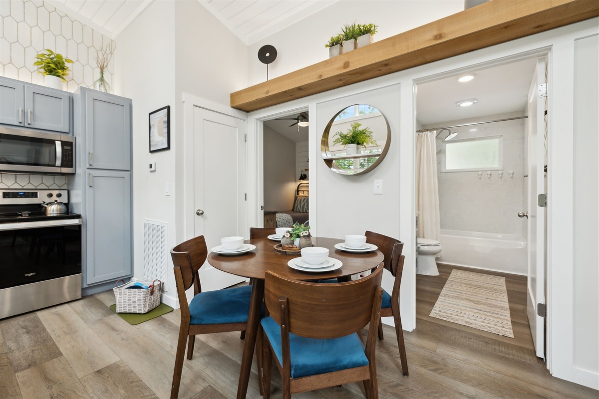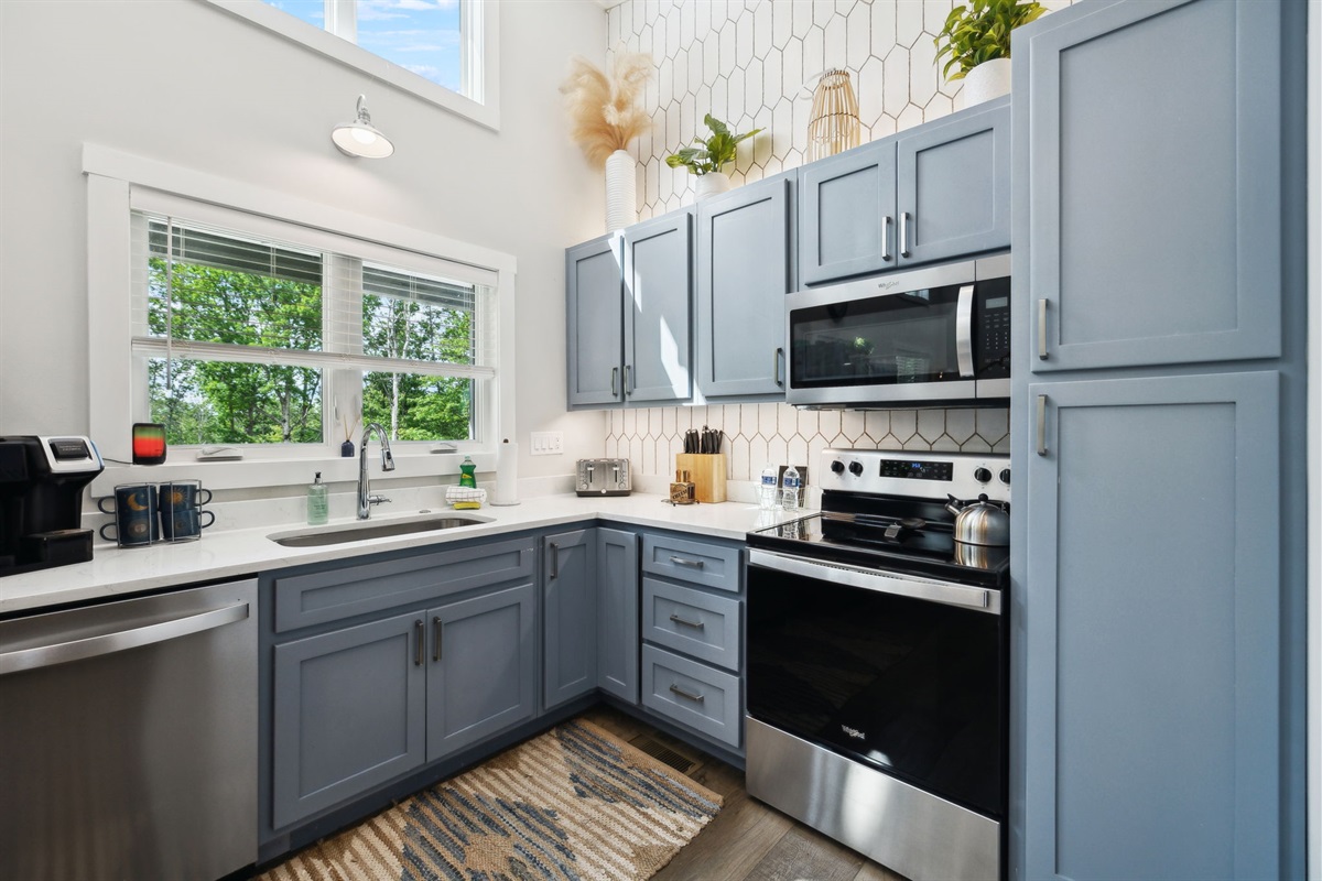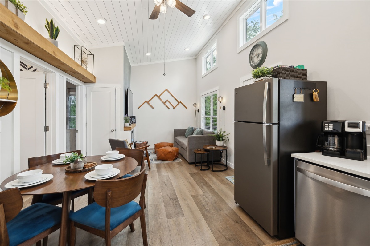 Modern charm meets bliss near the lake at Hillside Haven, a brand-new tiny home located in the peaceful Phase 2 of The Retreat at Water’s Edge. With creamy décor and bright interiors, this tiny home brings you the joys of a full-sized experience in a perfectly compact space.