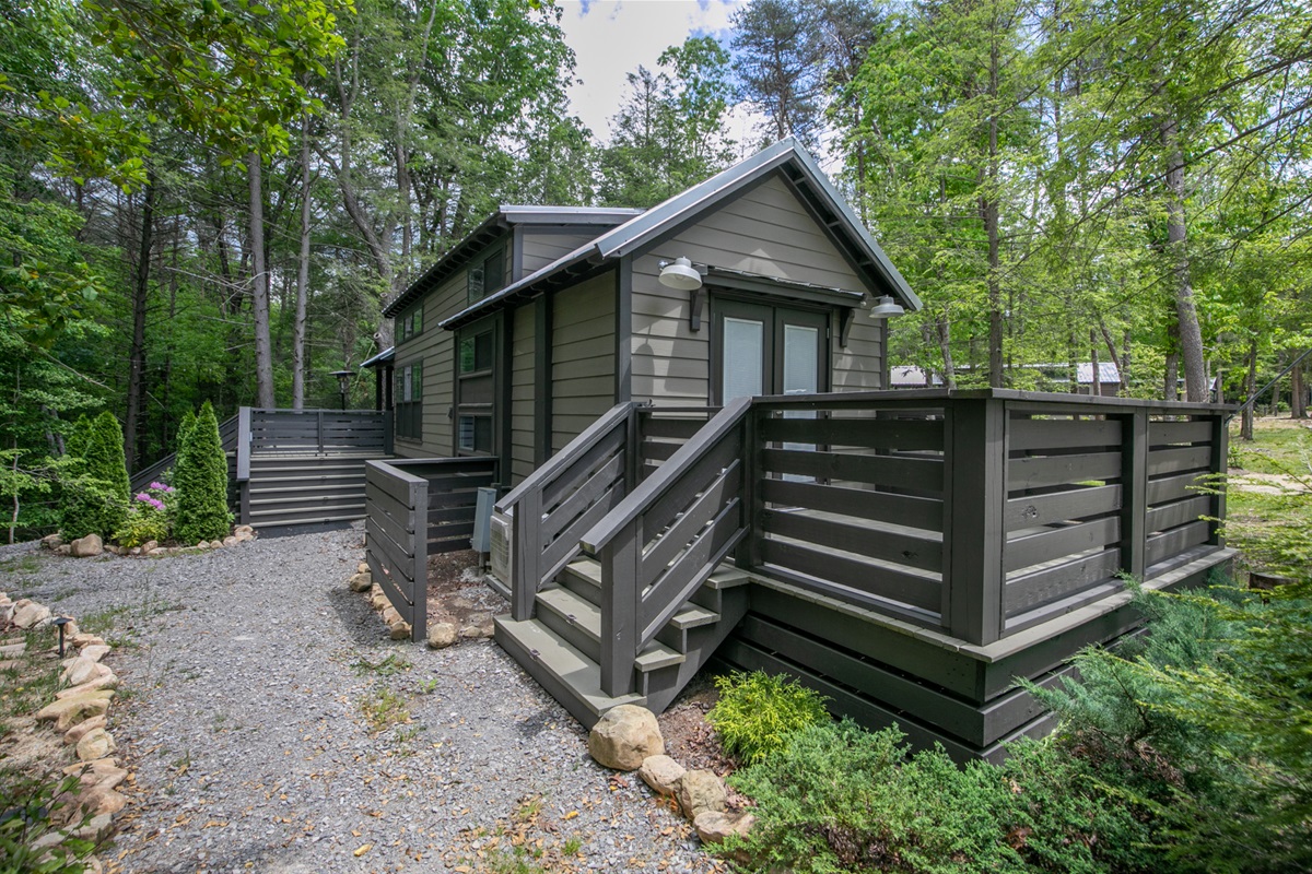 A creekside haven for nature lovers, Jenny’s Retreat offers peaceful seclusion and a front-row seat to Appalachian beauty. Located on a wooded corner of The Retreat at Deer Lick Falls, this cozy cabin features rustic-chic interiors, a fully stocked kitchen, and modern comforts like a streaming-ready smart TV.