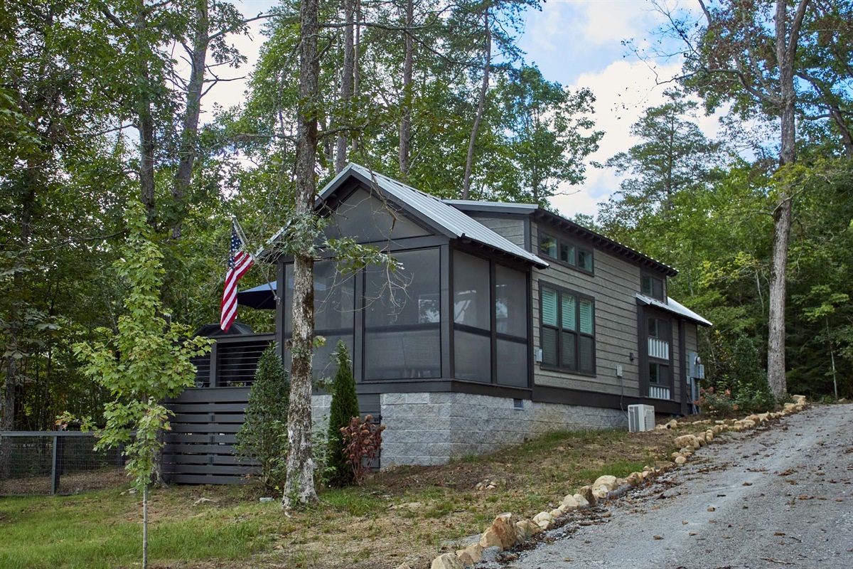 Welcome to Lakeview Oasis, where the name says it all. This traditional-style tiny home is perched just at the perfect angle for blissful views of lake, forest, and sky—a perfect combination for the nature enthusiast who prefers a little privacy. Soak in all this beauty from almost anywhere on the property, including the screened-in deck, the outdoor dining table, the grilling area, and the cozy fire pit.