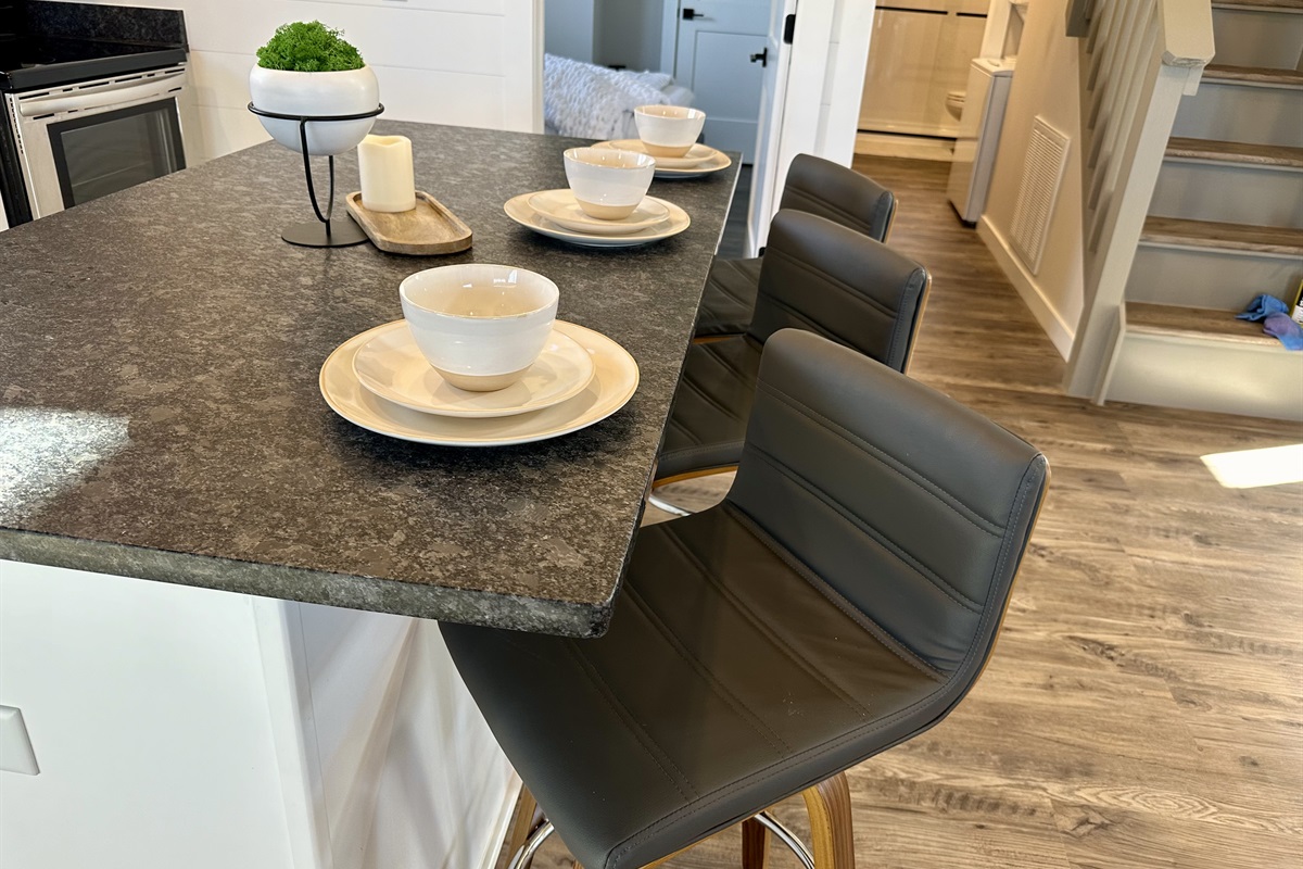 A fully stocked kitchen with modern appliances, cookware, and utensils, ready for everything from sunrise coffee and quick breakfasts to hearty, home-cooked dinners.