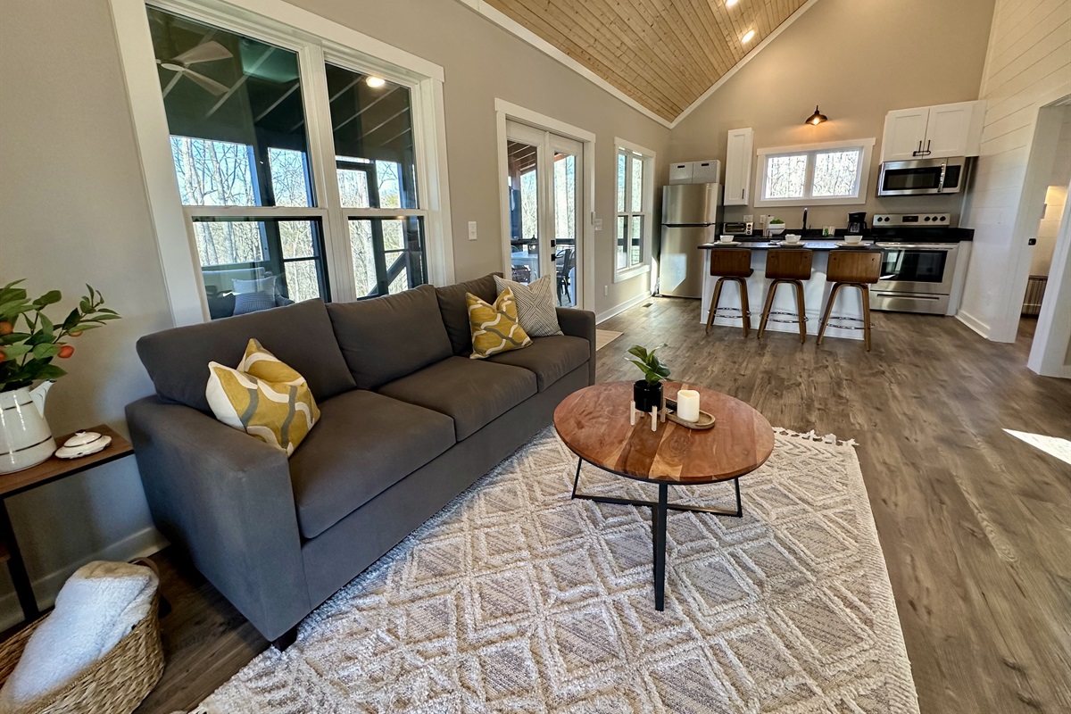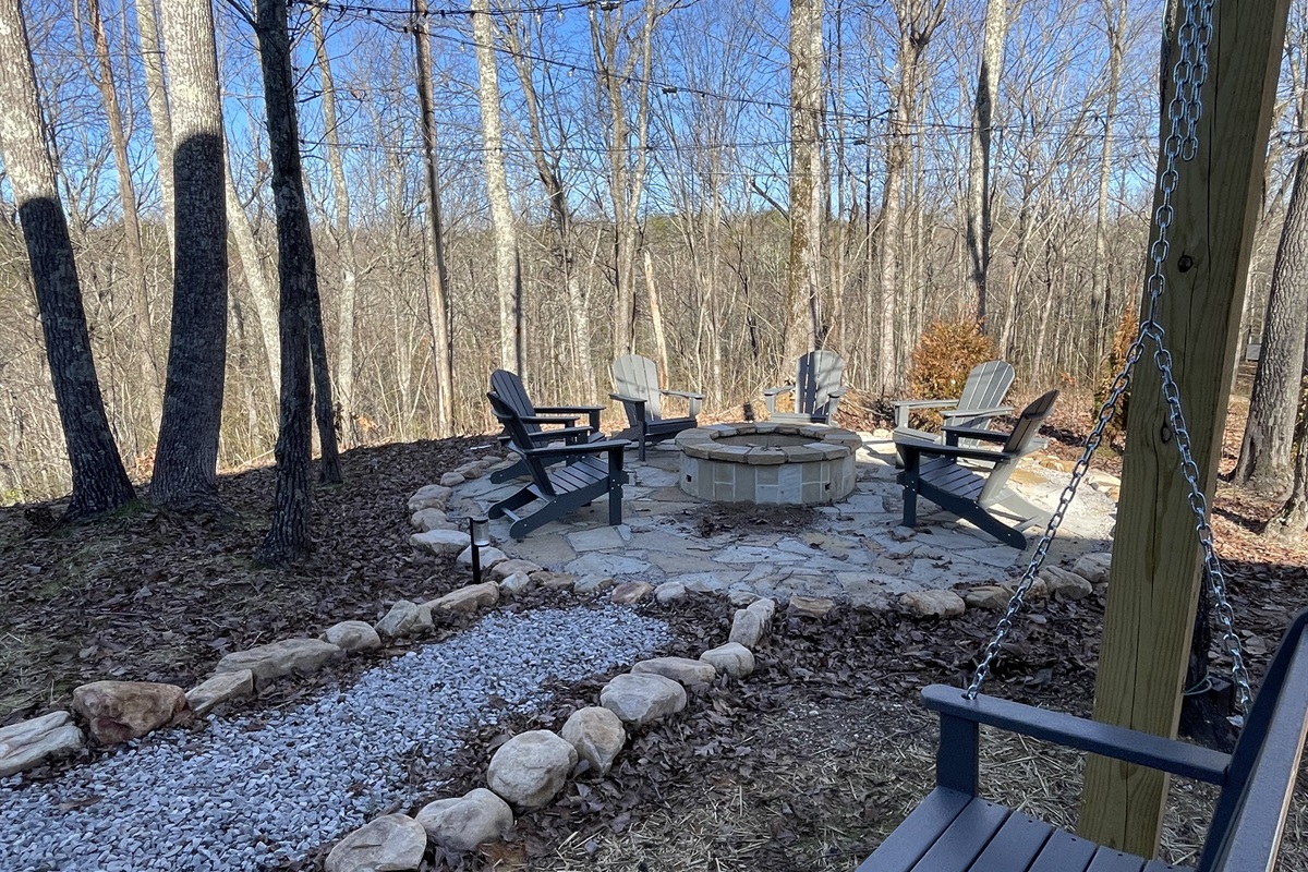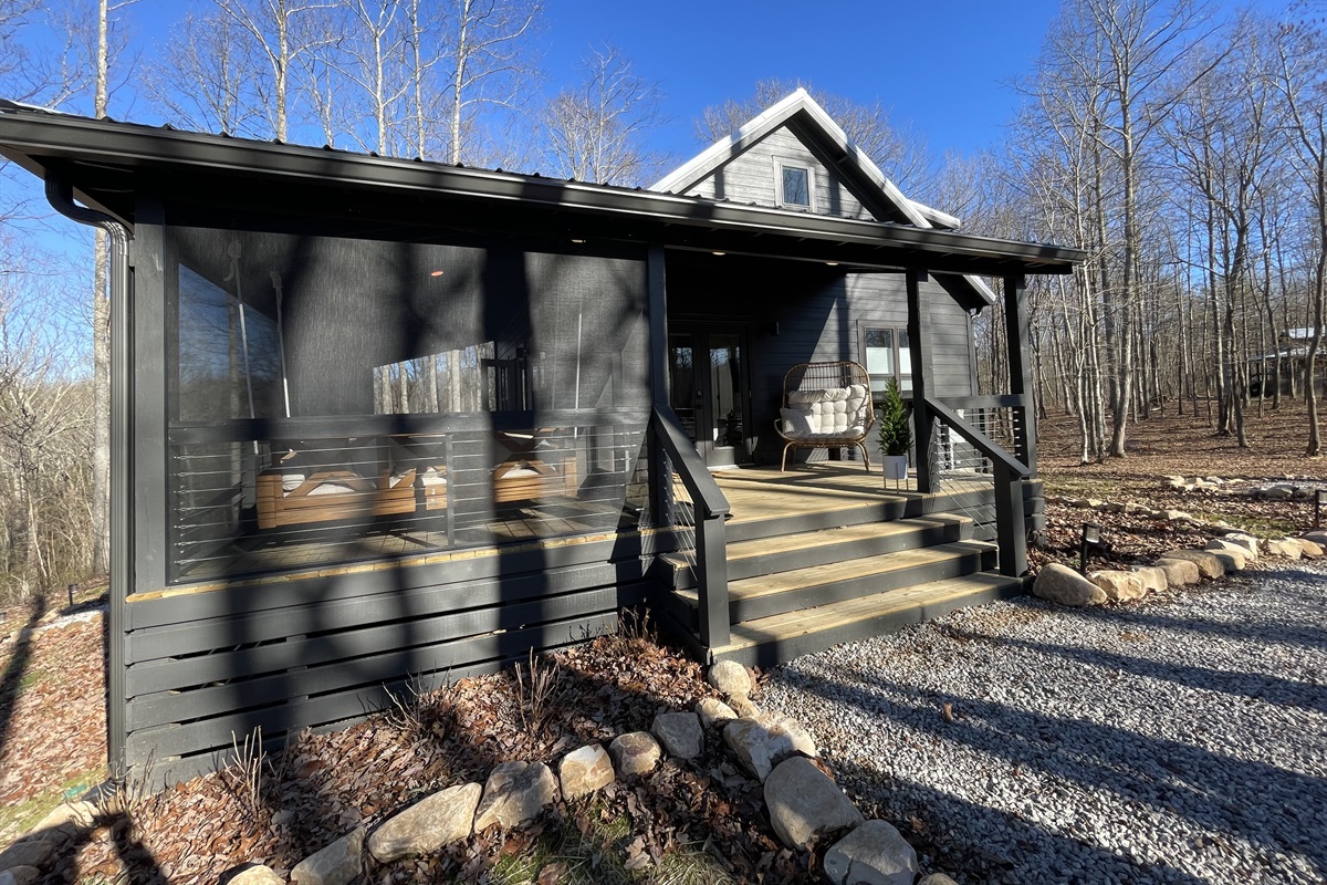Gather around the firepit under twinkling string lights, soak in sweeping mountain views from the porch swing, or relax in the charming screened-in bed swing. For added adventure, optional on-site canoe and kayak rentals invite you to explore the nearby lake and embrace the outdoors.