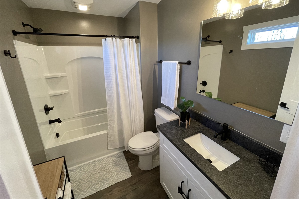 Two full bathrooms featuring modern fixtures, fresh towels, and essential amenities for a stress-free, comfortable stay.