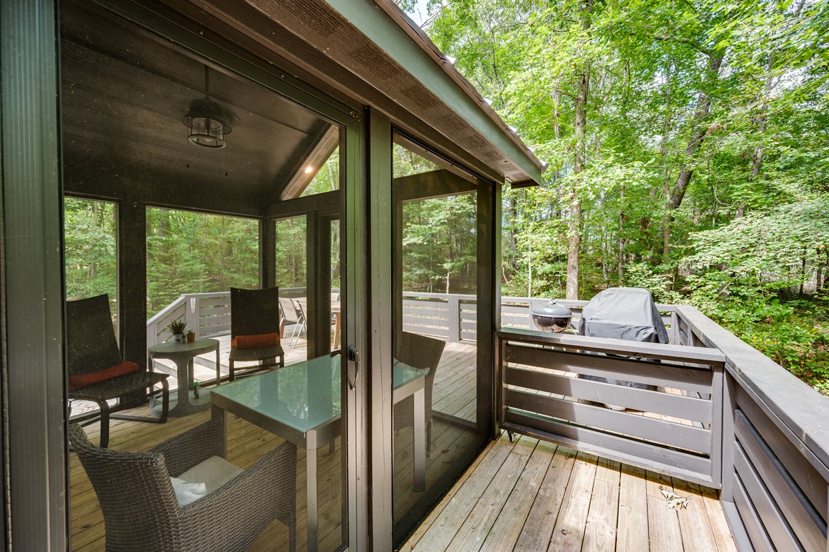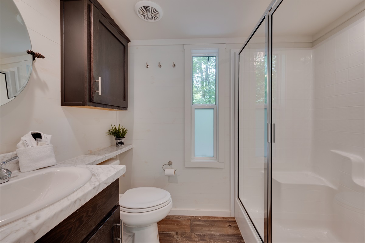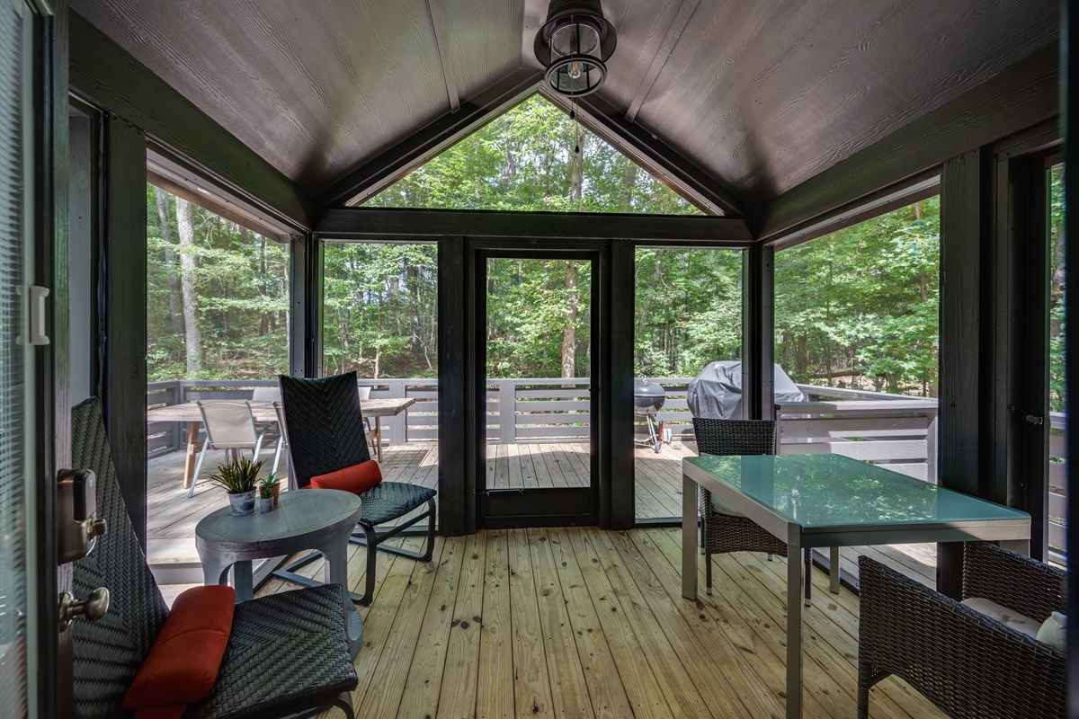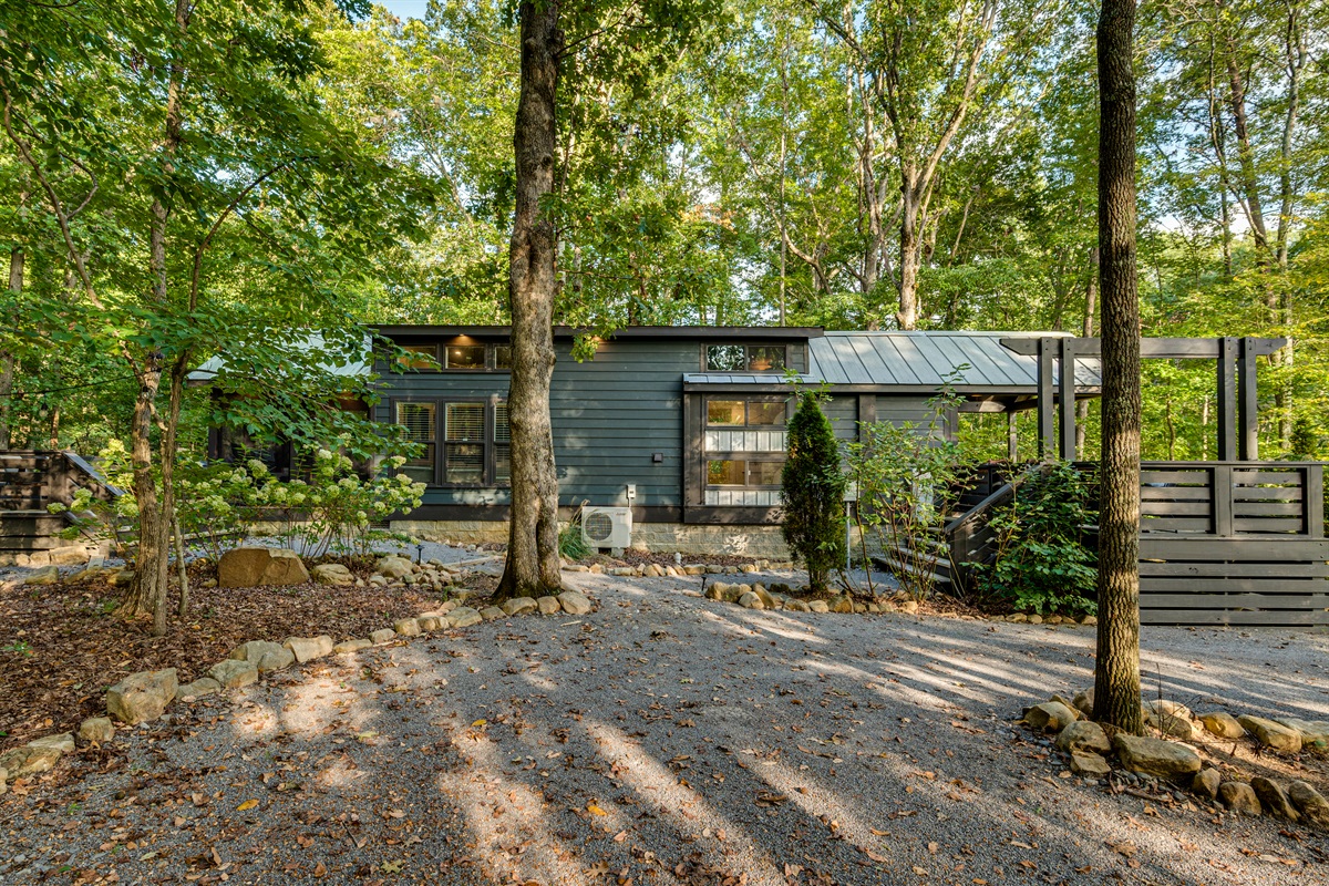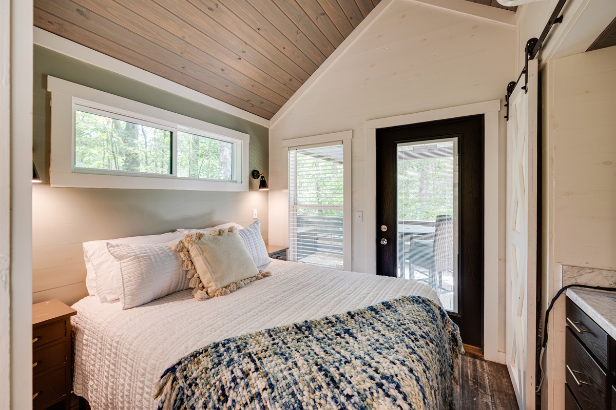 Welcome to Petite Retreat—where nature meets comfort in a charming, wooded hideaway near Water’s Edge. This thoughtfully designed tiny home offers a screened deck surrounded by trees, perfect for sipping coffee or unwinding after a day of adventure.