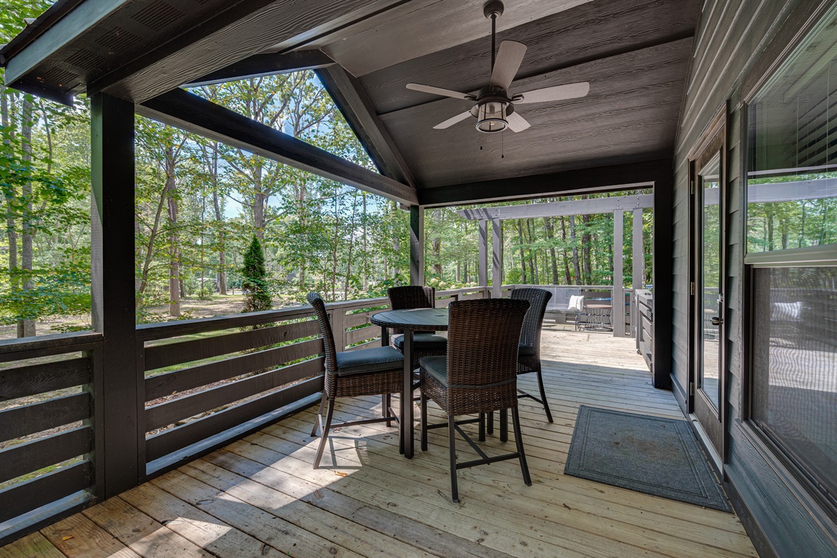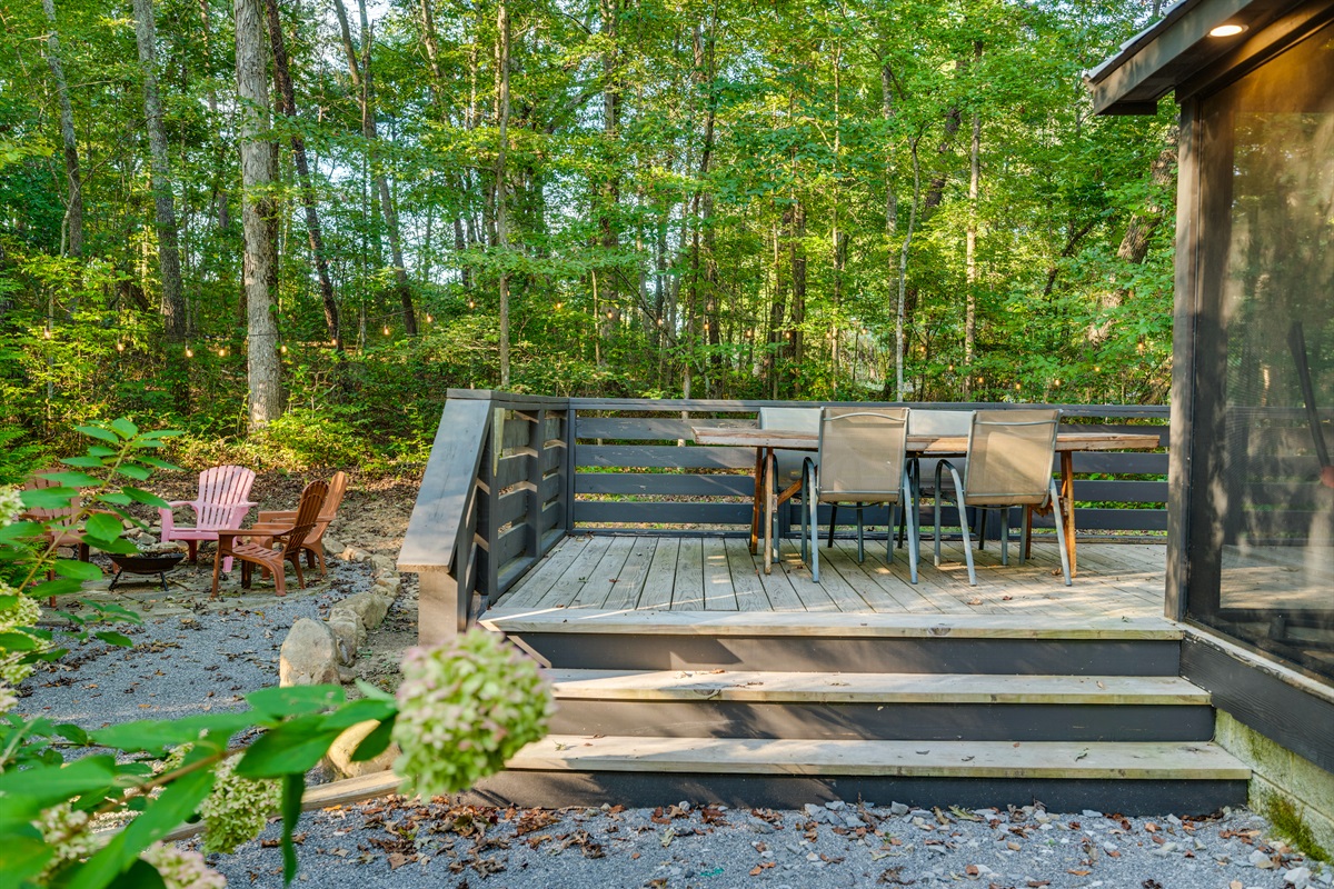 This tiny community was a perfect fall getaway. The Petite Retreat was tucked back the woods and felt very private. There were so many outdoor sitting areas, including a screened in porch, a covered deck with a ceiling fan, a large deck outback with a large table for eating then a great bonfire area. We have already planned our next getaway with our kids and grandkids.