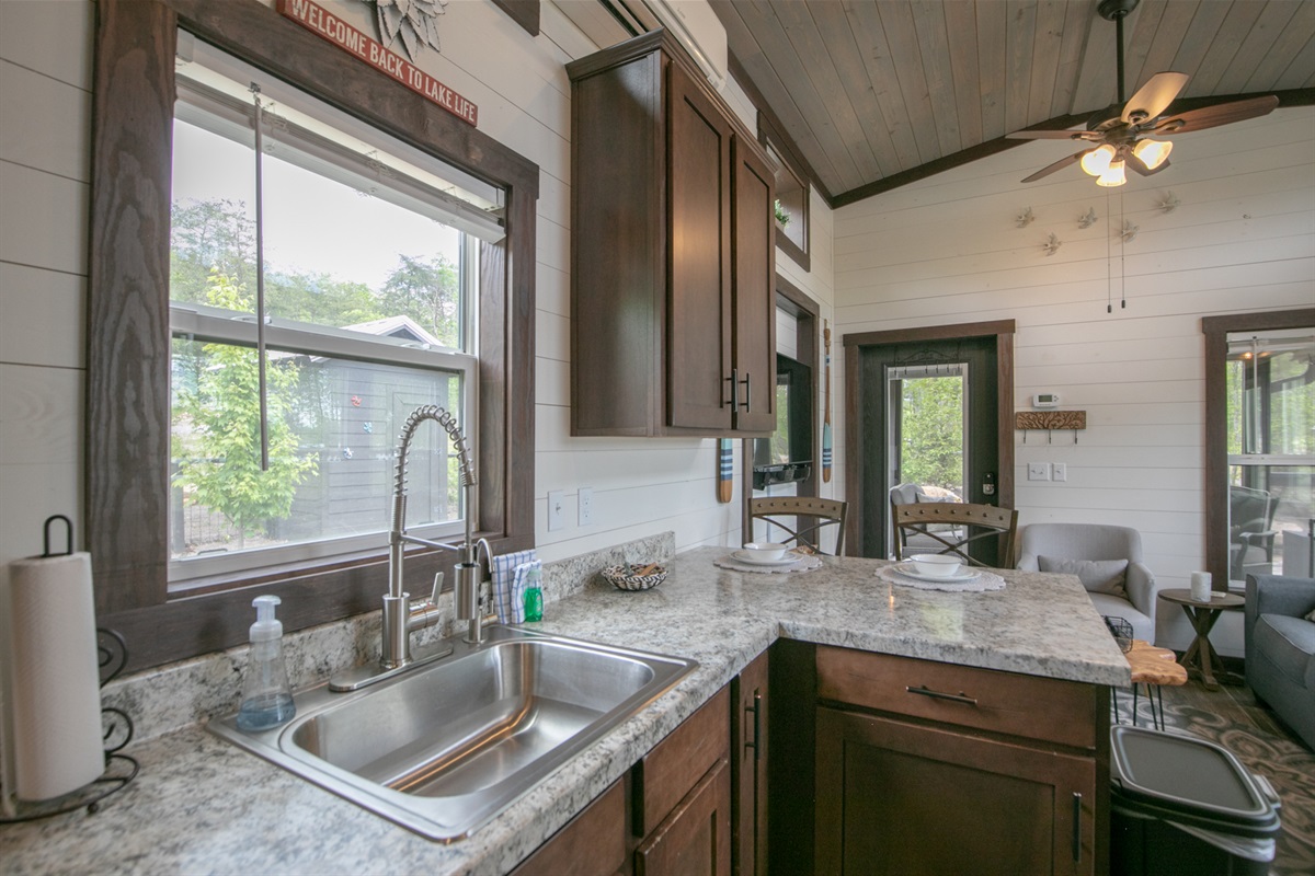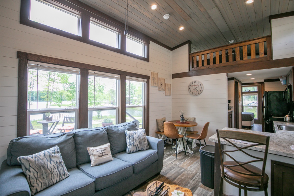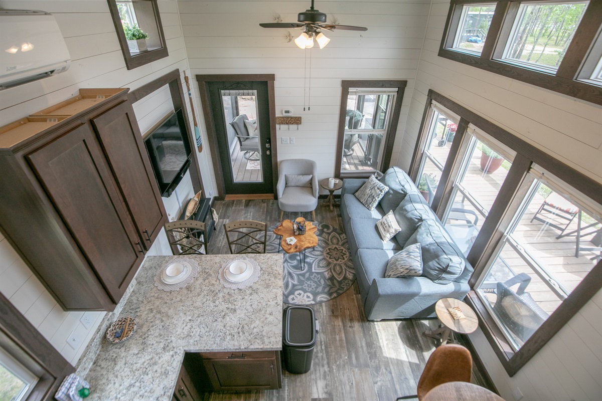 Tiny home as advertised. Adequately furnished. Charcoal grill , fire pit and porches a real bonus. Great location with dock on lake. Houses well-spaced on property to allow a feeling of privacy! Only comment is that loft can be quite warm but is equipped with an efficient fan. Splendid views!!