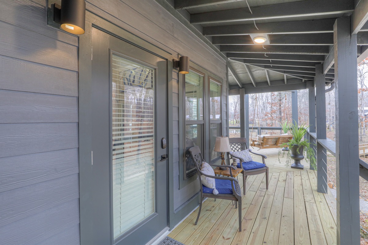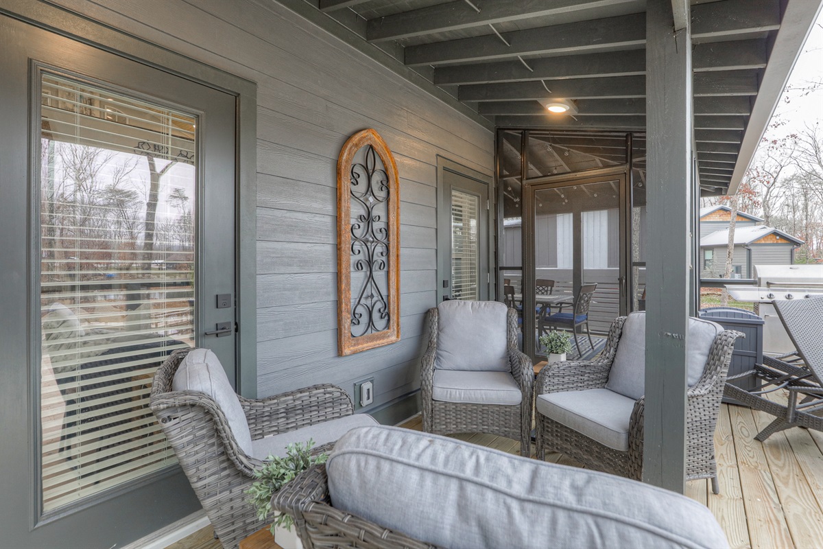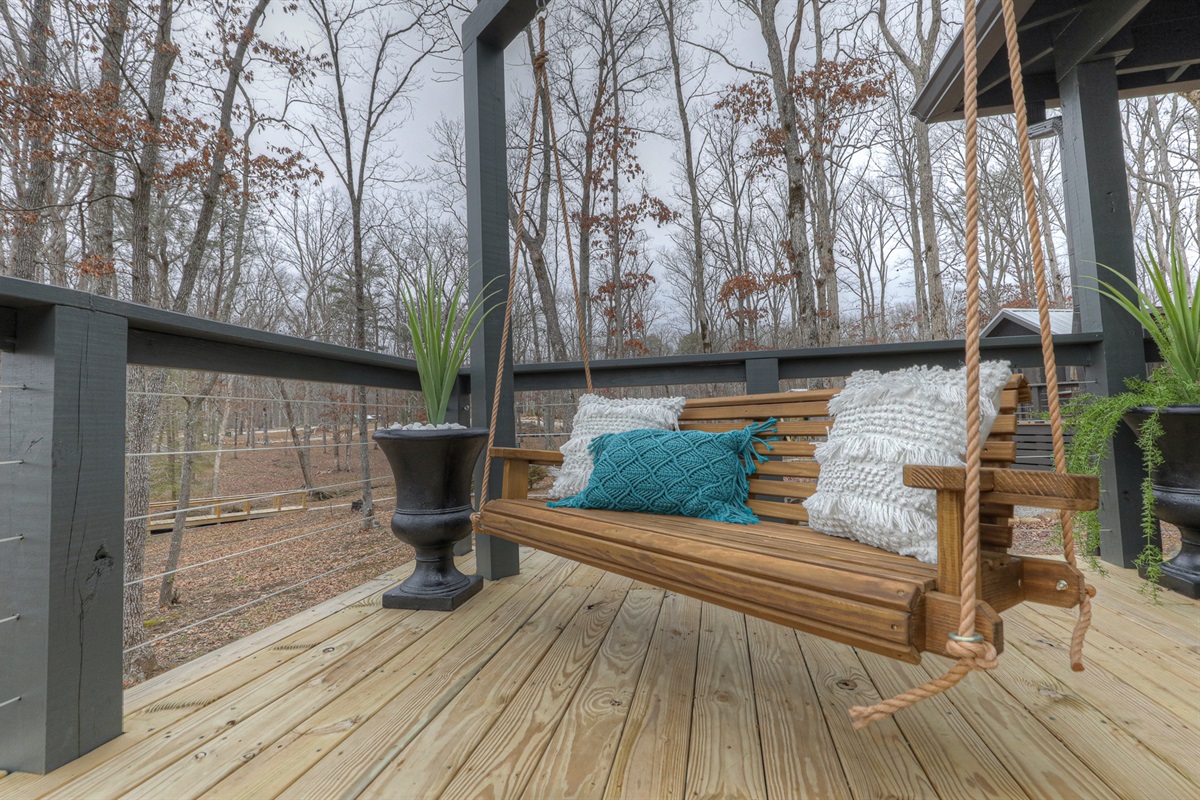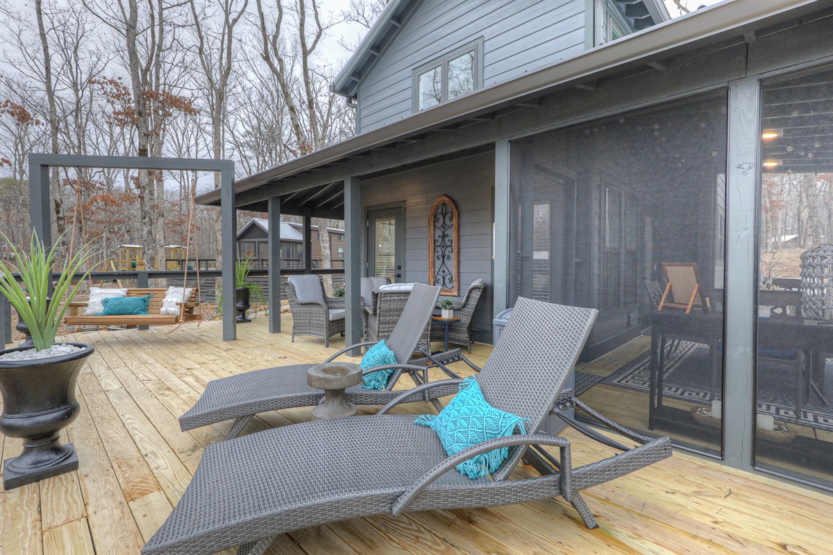 Enjoy peaceful mornings on the screened deck or sip wine by the campfire as the sun sets. With porch swings, loungers, and thoughtful design throughout, Sunset Wonder offers the ideal backdrop for both restful escapes and meaningful memories with family and friends.
