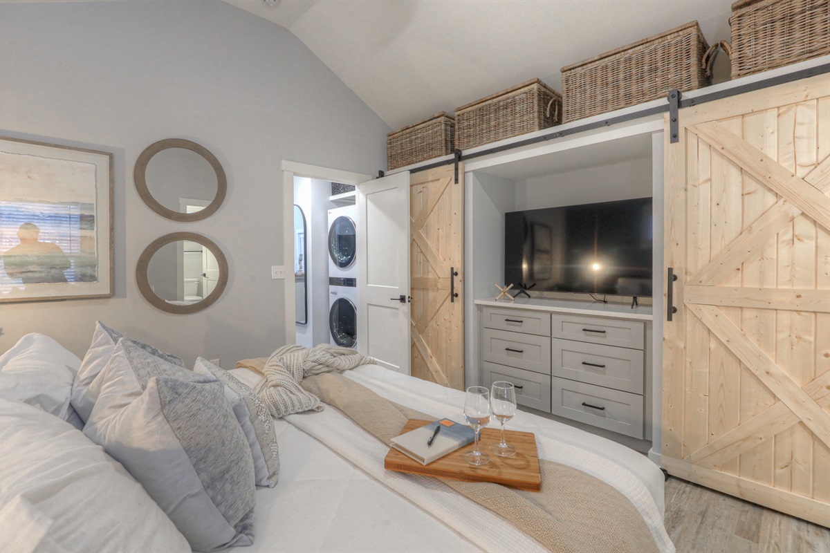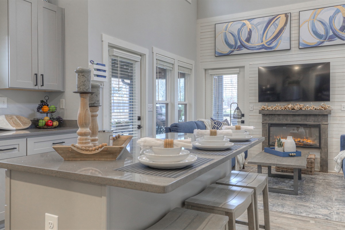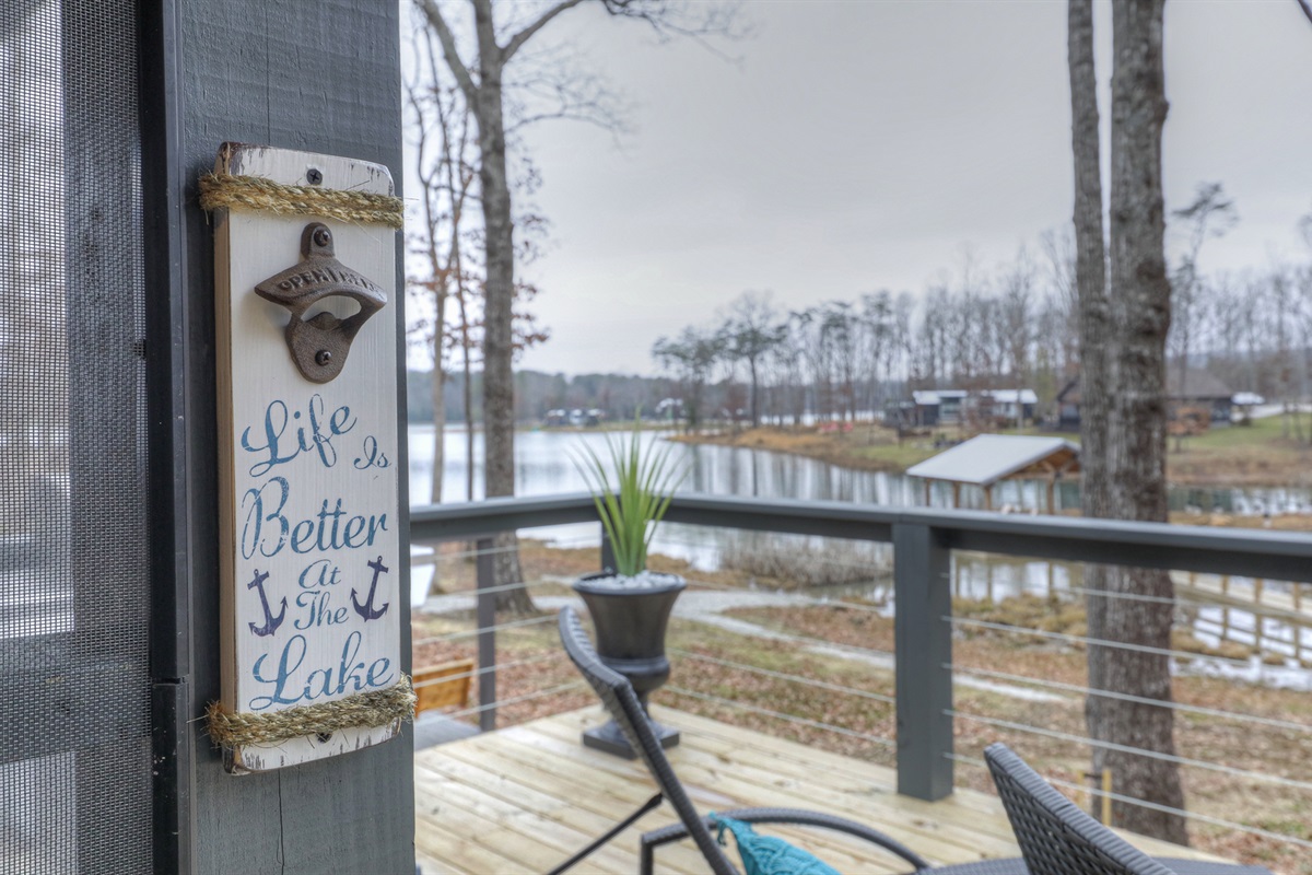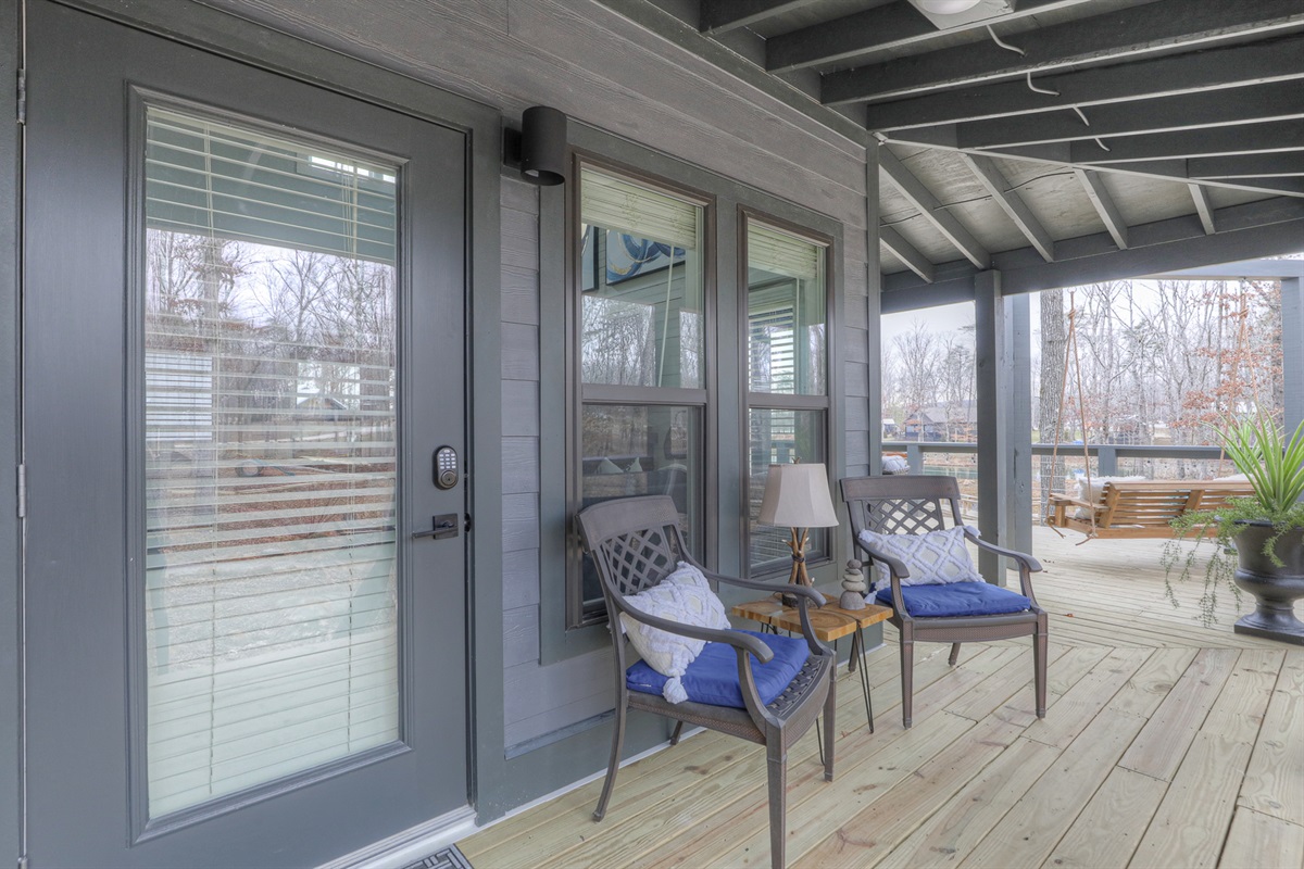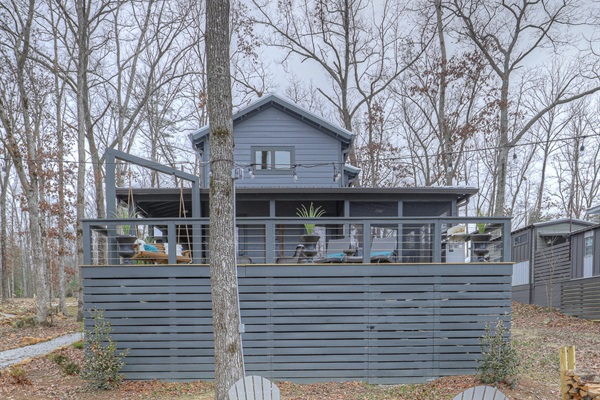 This place is even better than it looks. The Retreat development is amazing, super cute and charming. This unit has an amazing view of the lake and the sunset. The quality of the place was excellent, very well curated and taken care of! Perhaps my favorite part was the outdoor space which includes a screened in dining table and large deck with chairs, a swing, etc. If you are seeing a show at the Caverns or just wanting to spend some time in the area, try this place … you won’t be disappointed.