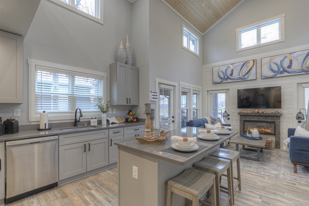 We have stayed at a couple diffenent homes in Water's Edge. This home is by far the best! It is decorated so cute and has everything you need for a perfect weekend. The house is stocked with the nicest kitchen applianes and the home owner thought of all the small stuff like a block for charging your cell phone! Beds were comfortable. Views are gorgeous and there was plenty of firewood. We will stay here again and very soon!