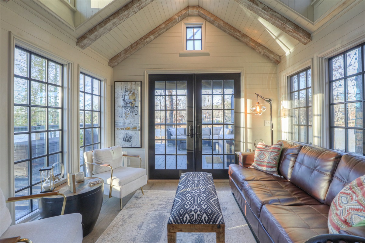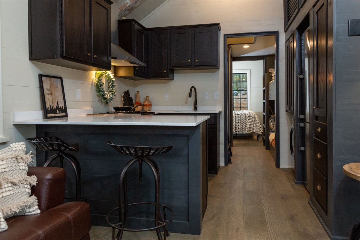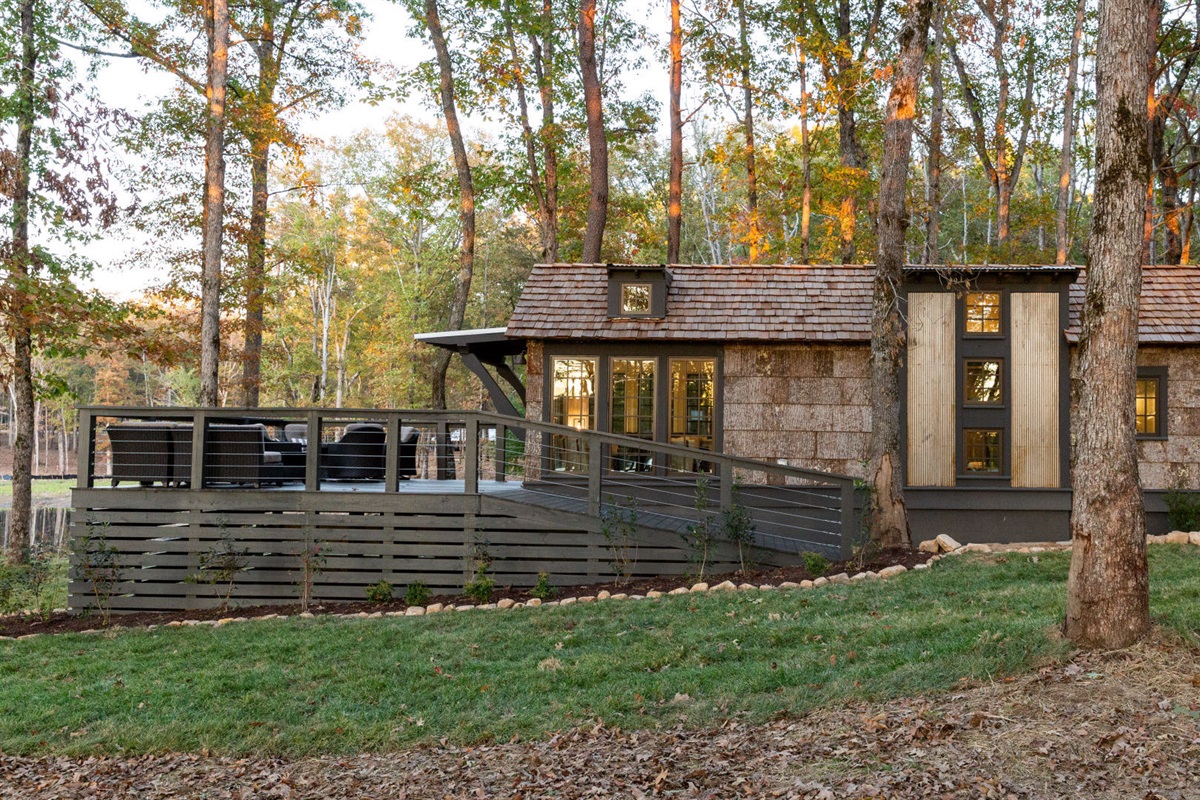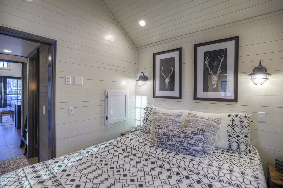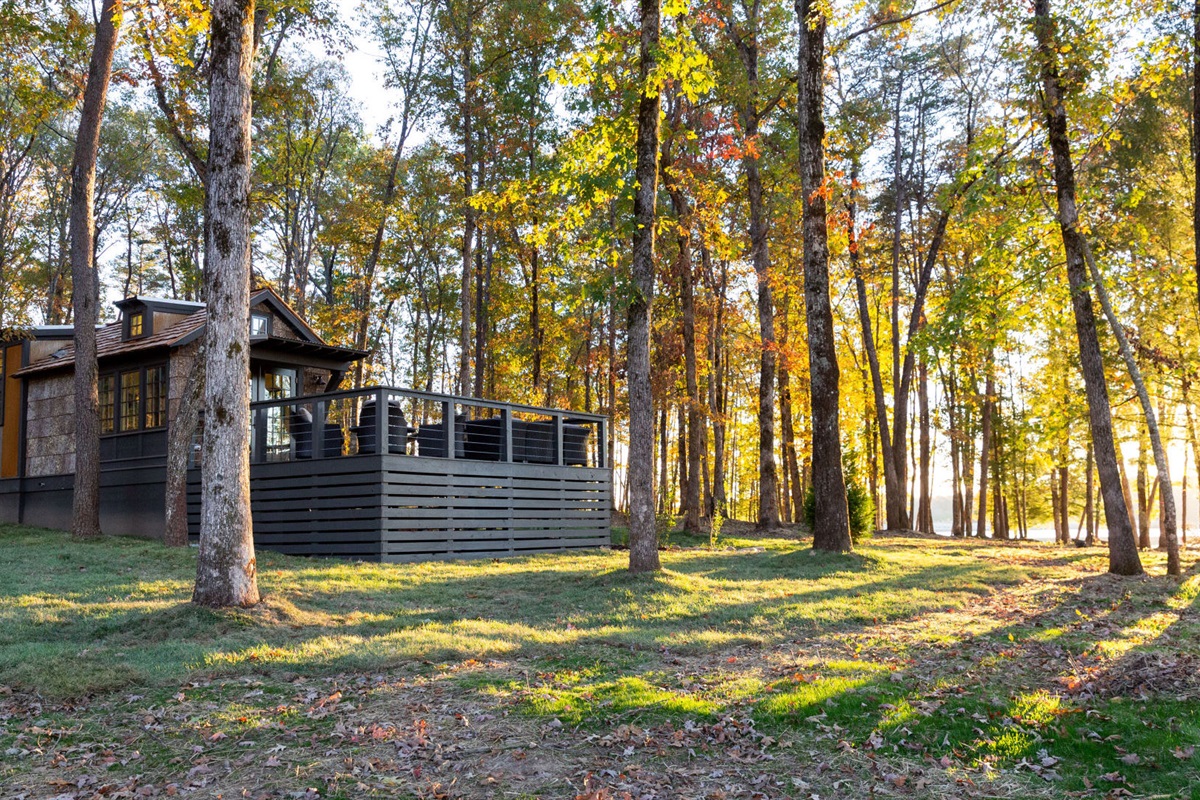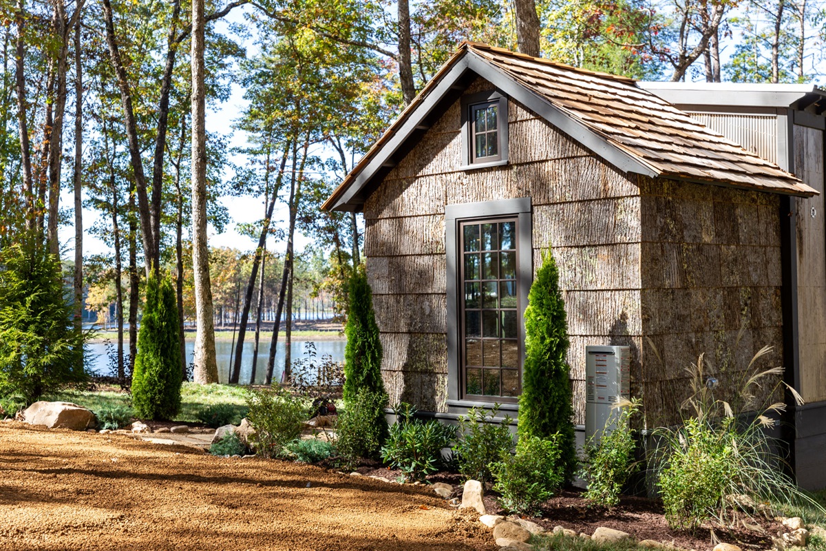 The Acorn Cottage is a lakeside gem within The Retreat at Water’s Edge. This charming 400-square-foot home captures the essence of tiny living while delivering sweeping lake views from a sunlit, window-lined living space.