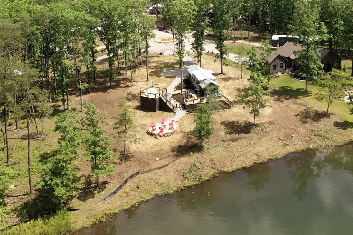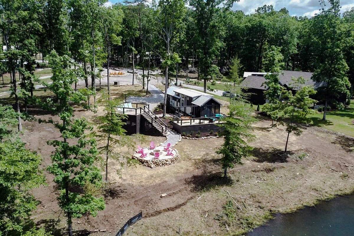 Lakeside property with gorgeous views. The neighborhood is still under construction but we didn't hear any construction noise. The lot is spacious, as is the house. For it to be a tiny house, it didn't seem so tiny for our family. Cozy and well appointed with everything we needed to cook meals. There wasn't any laundry detergent so bring your own if you plan on doing laundry. We look forward to visiting this area again.