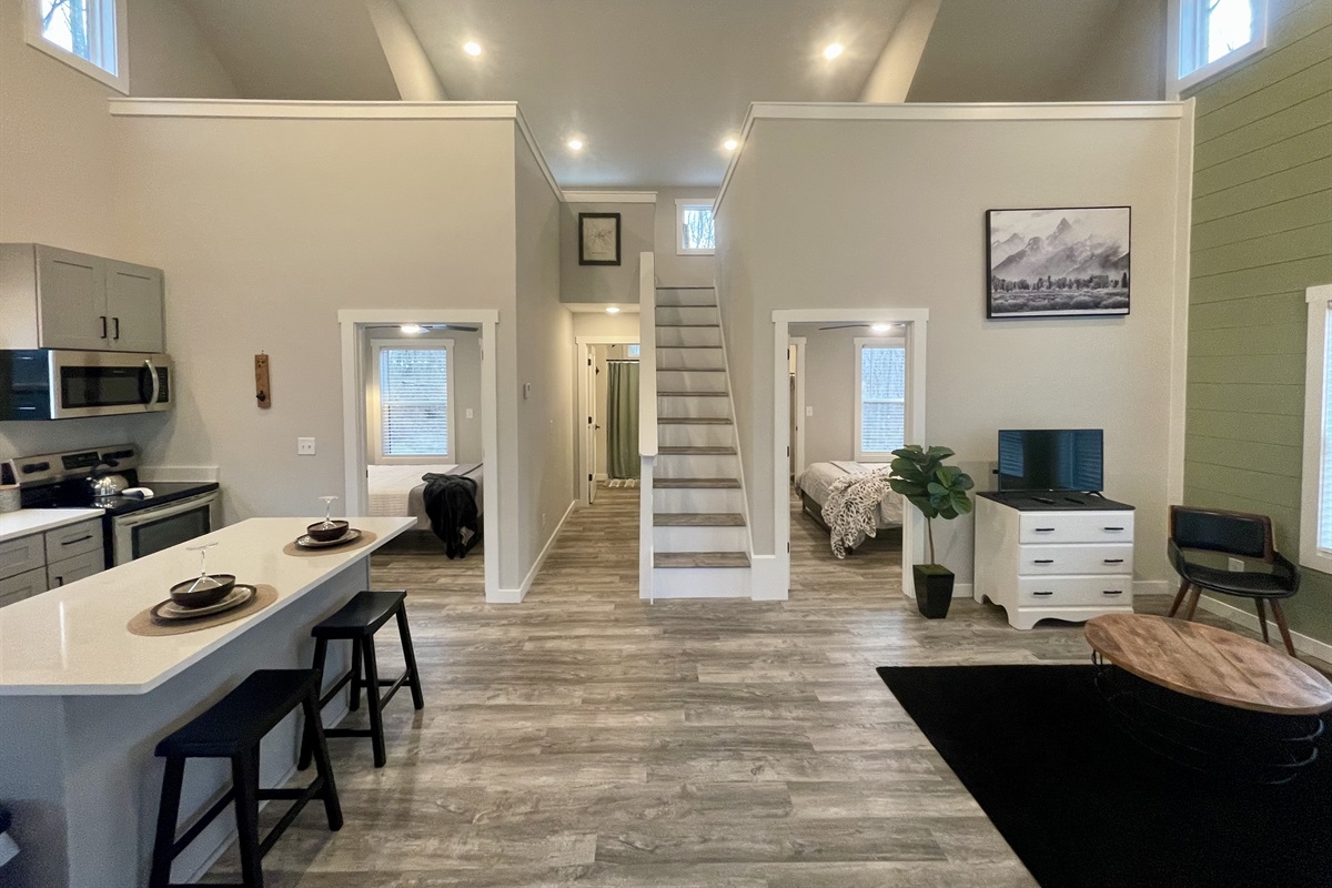 True to its name, The Great Escape offers the perfect balance of modern comfort and off-the-grid serenity. This luxury tiny home at Sunset Bluff is a destination in itself—ideal for work retreats, weekend escapes, or intimate gatherings.