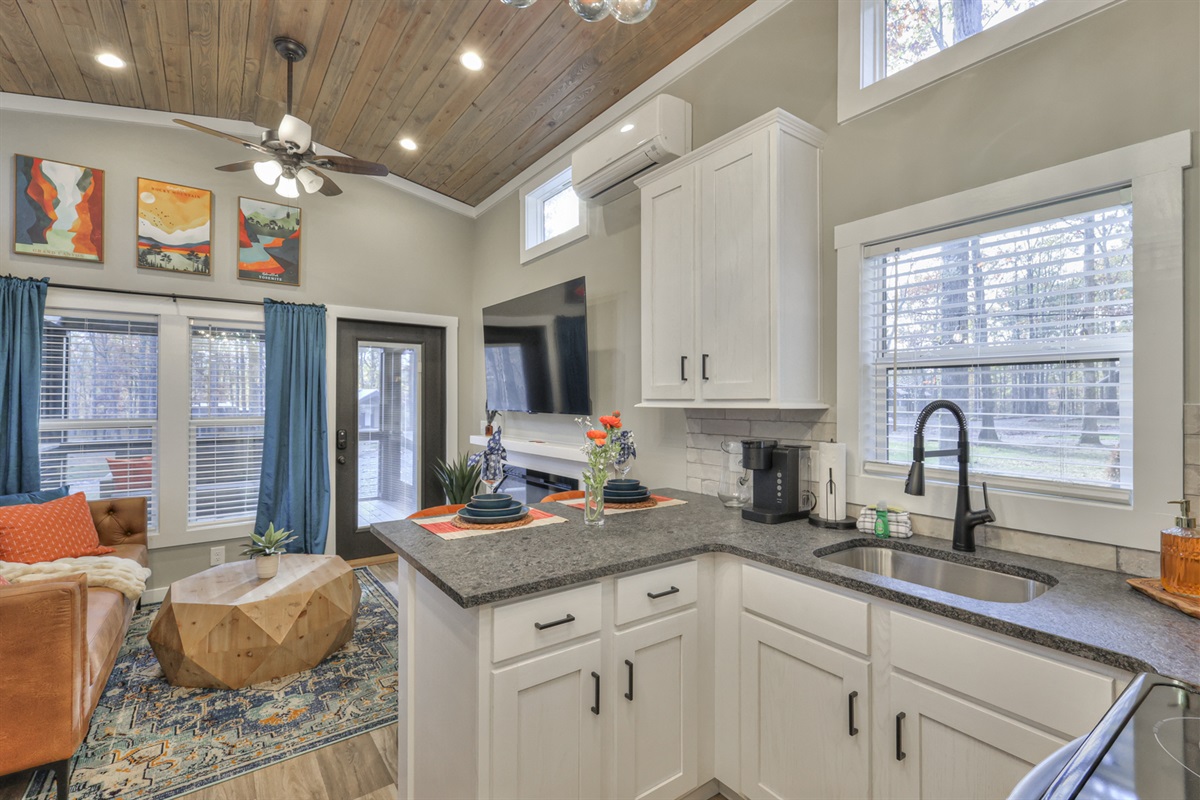 Large windows flood the space with natural light, while a fully stocked kitchen and cozy furnishings ensure every need is met. Begin your mornings with a warm drink on the porch and end your nights wrapped in a blanket beneath a sky full of stars
