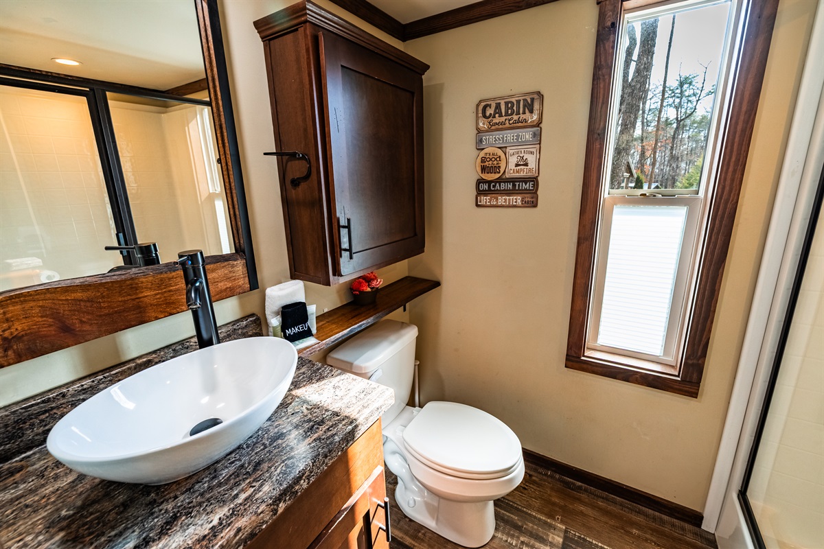 Wake up to the stillness of the woods and ease into your day with coffee on the sun deck or curled up inside by the window in front of the fireplace.